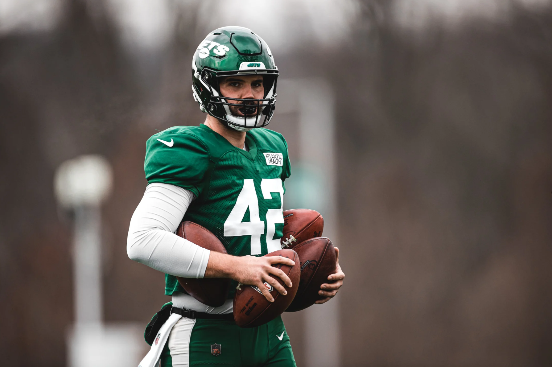 New York Jets long snapper Thomas Hennessy takes nothing for granted. Your typical long snapper practices their craft with a single football, like a chump. Not Hennessy. As you can see this photo from the Jets’ practice this week, Hennessy believes that if you can master the challenge of long-snapping four footballs, then long-snapping just a single football is a cinch.